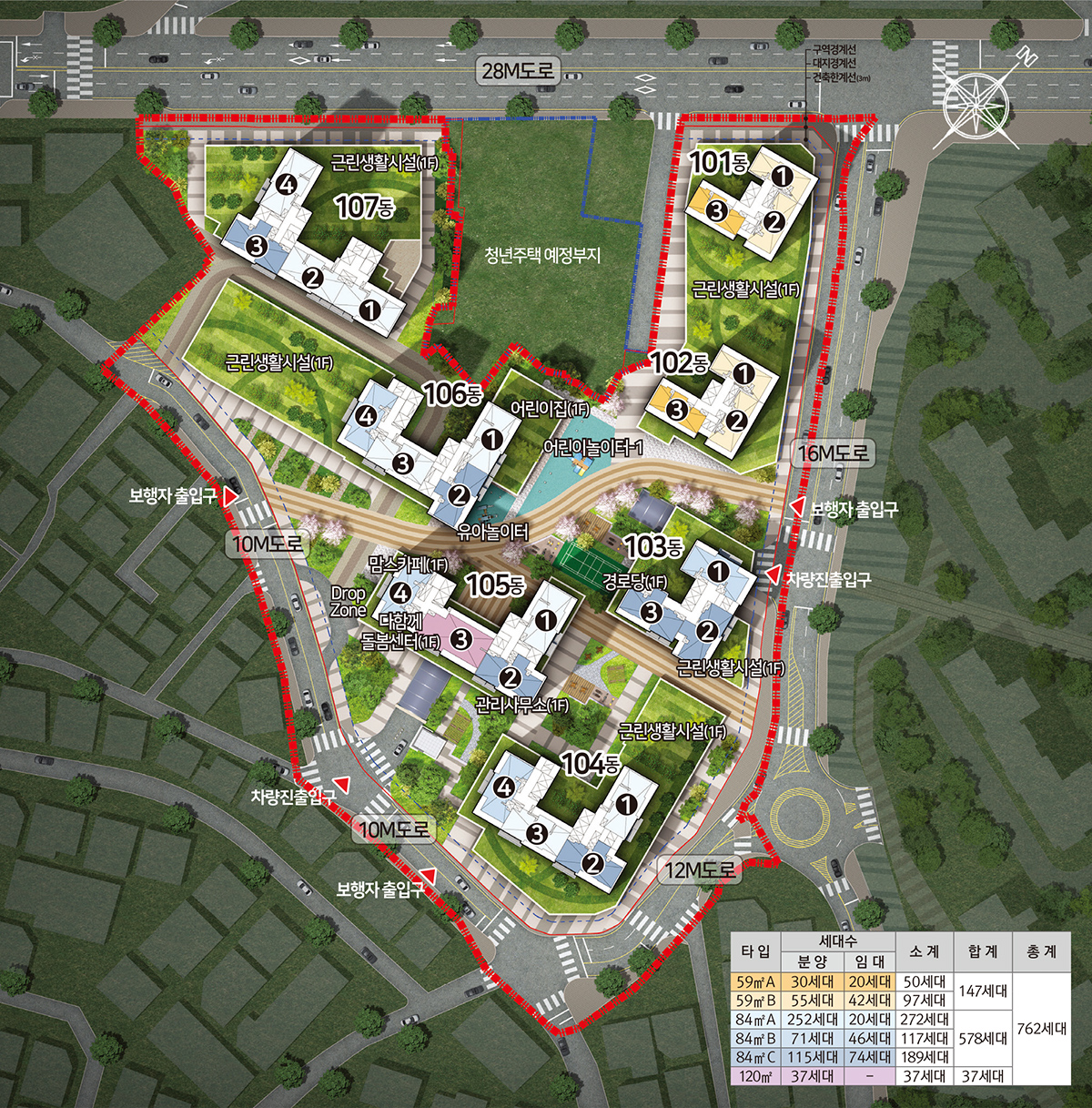 상기 CG 및 이미지 등은 지구단위계획(안)으로 모집공고와 차이가 있으며, 건축물의 외관 및 색채계획은 일부 변경될 수 있습니다. 또한 조경 시설물과 식재는 실제와 다를 수 있습니다.